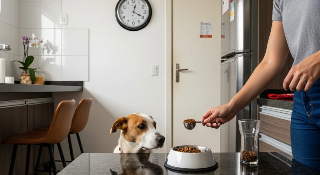 Depois, registre mentalmente ou por escrito três pontos por alguns dias: quanto foi servido, quanto sobrou e como o animal se comportou. Esse acompanhamento curto já mostra se ele come rápido demais, belisca, deixa sobras frequentes ou pede alimento extra fora de hora.