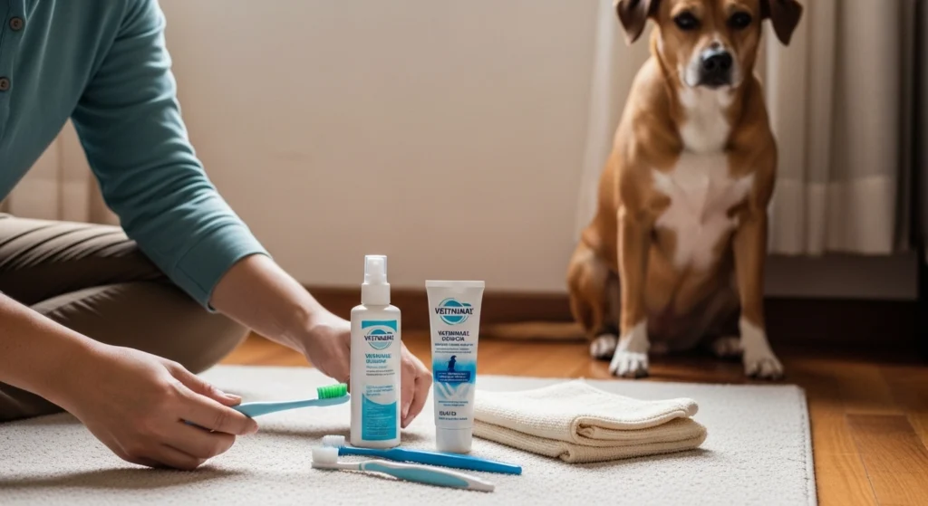 O básico costuma ser suficiente: escova para pet ou dedeira macia, pasta formulada para uso veterinário e ambiente calmo. O ideal é escolher algo que permita controle leve da mão, porque movimentos bruscos costumam piorar a aceitação.