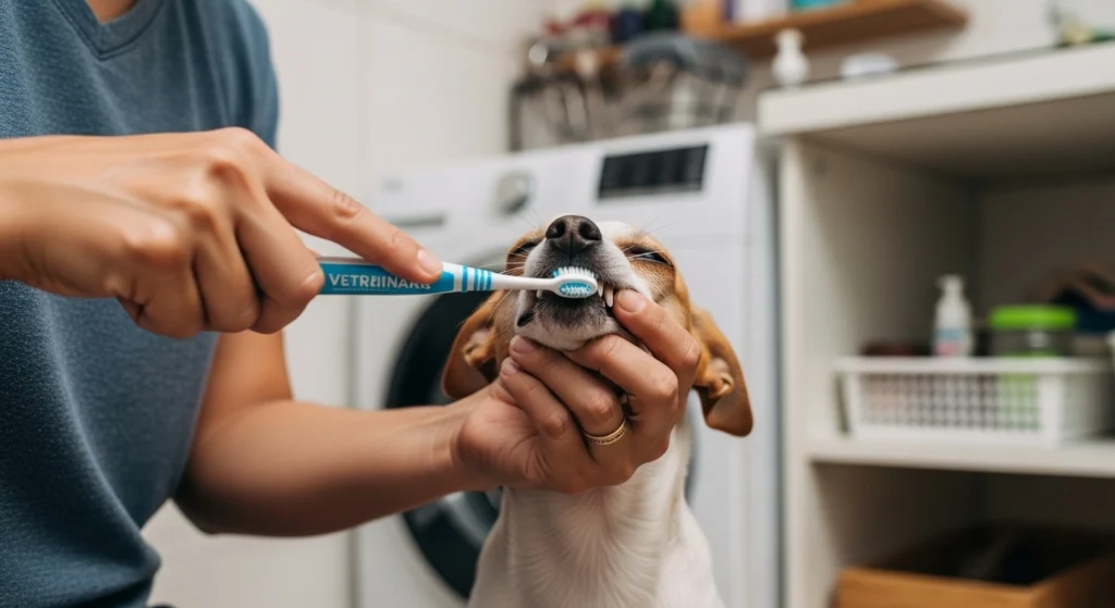 A orientação internacional em odontologia veterinária trata a escovação diária como referência de prevenção contra placa e progressão da doença periodontal. Ela funciona melhor como cuidado contínuo em casa, e não como solução tardia para uma boca já dolorida. :contentReference[oaicite:2]{index=2}