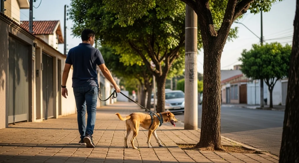 Orientações públicas de proteção animal reforçam a importância de usar guia, evitar fugas e ter cautela com solo quente em dias de calor. Isso não é detalhe: um horário mal escolhido altera comportamento, conforto e segurança.
