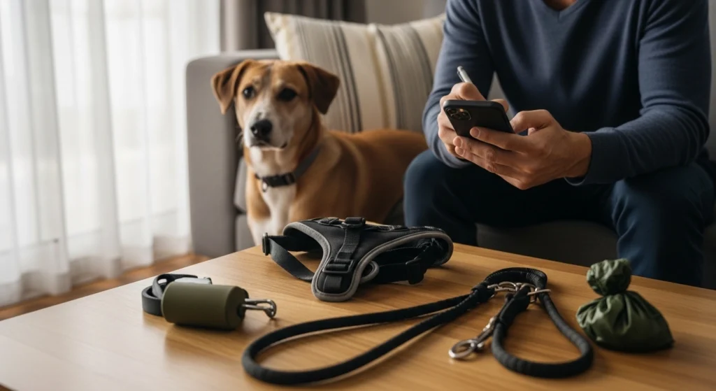 Funciona bem avisar qual equipamento usar, de que lado o cão costuma andar, se pode cumprimentar pessoas, se aceita carinho na rua e se o tutor prefere evitar contato com outros animais. Quanto menos espaço para adivinhação, melhor.