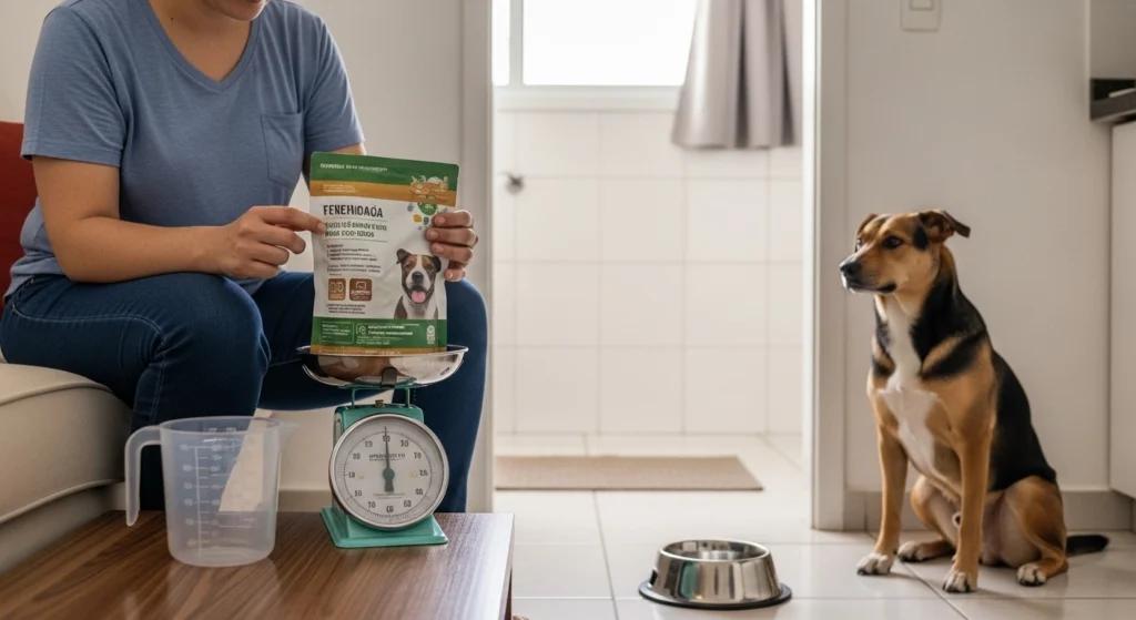 Também existe o lado oposto. Alguns tutores, com medo de exagerar, oferecem menos do que o necessário sem perceber. Isso acontece muito quando o alimento muda, quando a embalagem nova tem medida diferente ou quando a pessoa usa recipiente sem marcação.