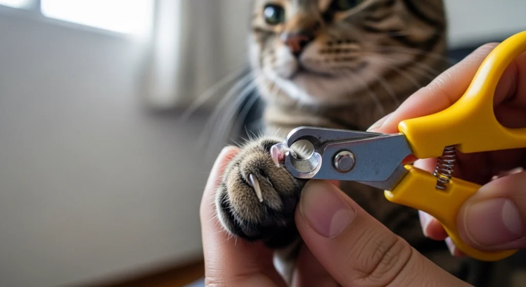 Usar cortador humano é um equívoco frequente. Além de não ser pensado para a curvatura da garra felina, ele pode comprimir a estrutura e deixar o corte irregular, o que incomoda mais.