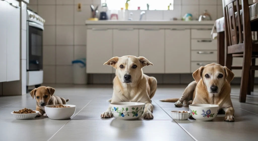 Casas com mais de um cão também exigem atenção extra. Quando todos comem juntos sem separação, um pode avançar no pote do outro, e o tutor perde a noção de quanto cada um realmente ingeriu.