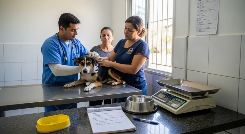 - Filhotes muito jovens, idosos frágeis e cães doentes exigem avaliação profissional.