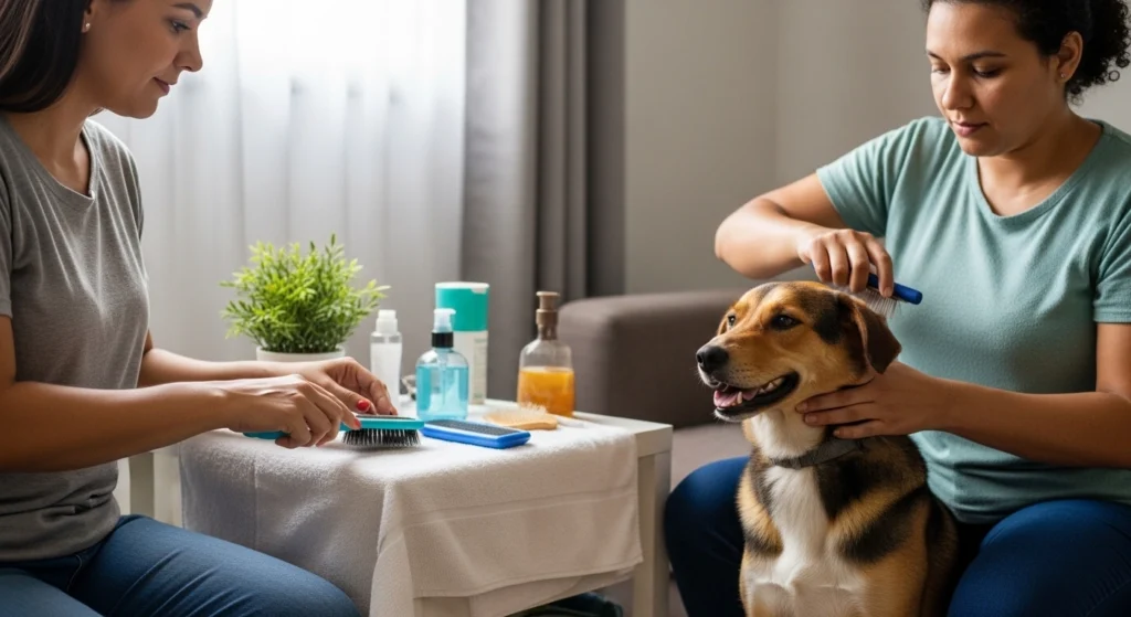 Também vale alinhar o objetivo. Em uma casa, o foco pode ser tirar pelo solto do sofá. Em outra, o principal pode ser evitar embaraço, monitorar a pele ou acostumar o cão ao manuseio. Quando o objetivo muda, o jeito de executar também muda.