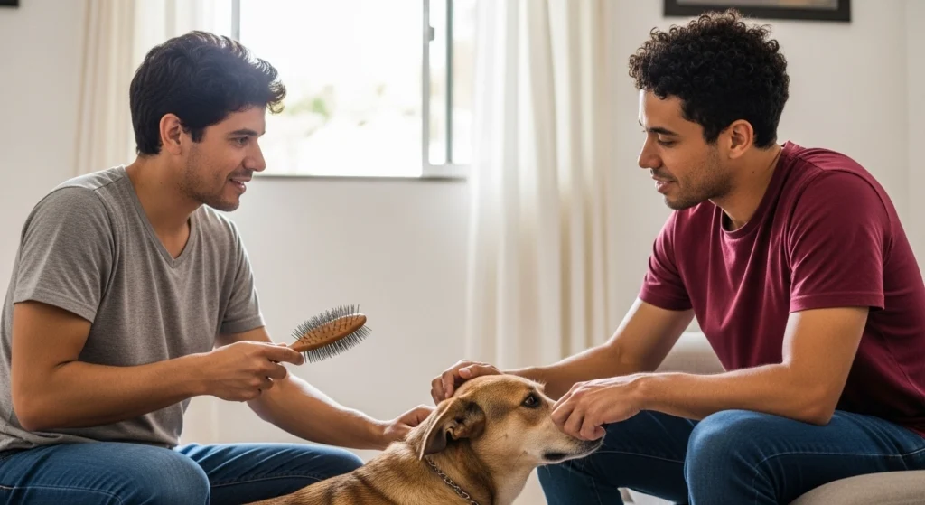 Quando duas pessoas cuidam do mesmo cão, o que mais costuma falhar não é a boa vontade. O problema, na maior parte das vezes, é a falta de combinação clara sobre quem faz, quando faz e o que deve ser observado. Na prática, a escovação entra nessa zona cinzenta e acaba sendo adiada, feita pela metade ou repetida sem necessidade.